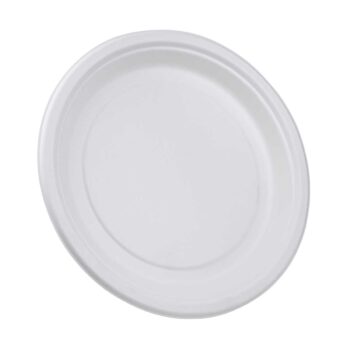 A full-size sugarcane bagasse plate designed for complete meals in professional food service environments. Suitable for restaurants and high-volume kitchens where strength, heat handling, and clean presentation are essential.