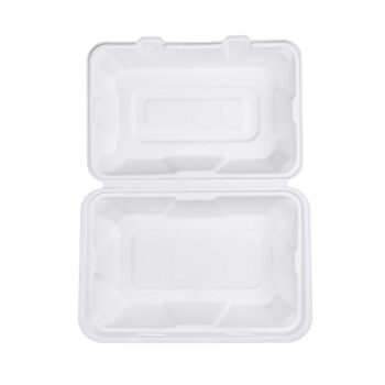 A large-format sugarcane bagasse clamshell container designed for full meals and generous portions. Suitable for large meals that require secure closure, heat handling, and reliable performance during transport.