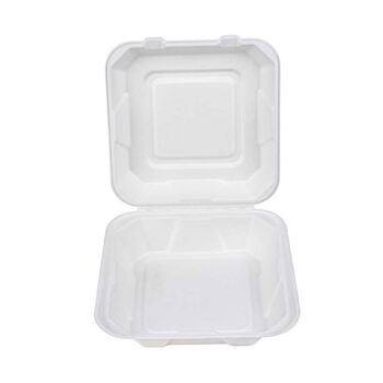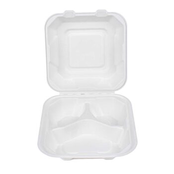 8 × 8 Inch Bagasse Compartment Clamshell Container (3 Compartment)